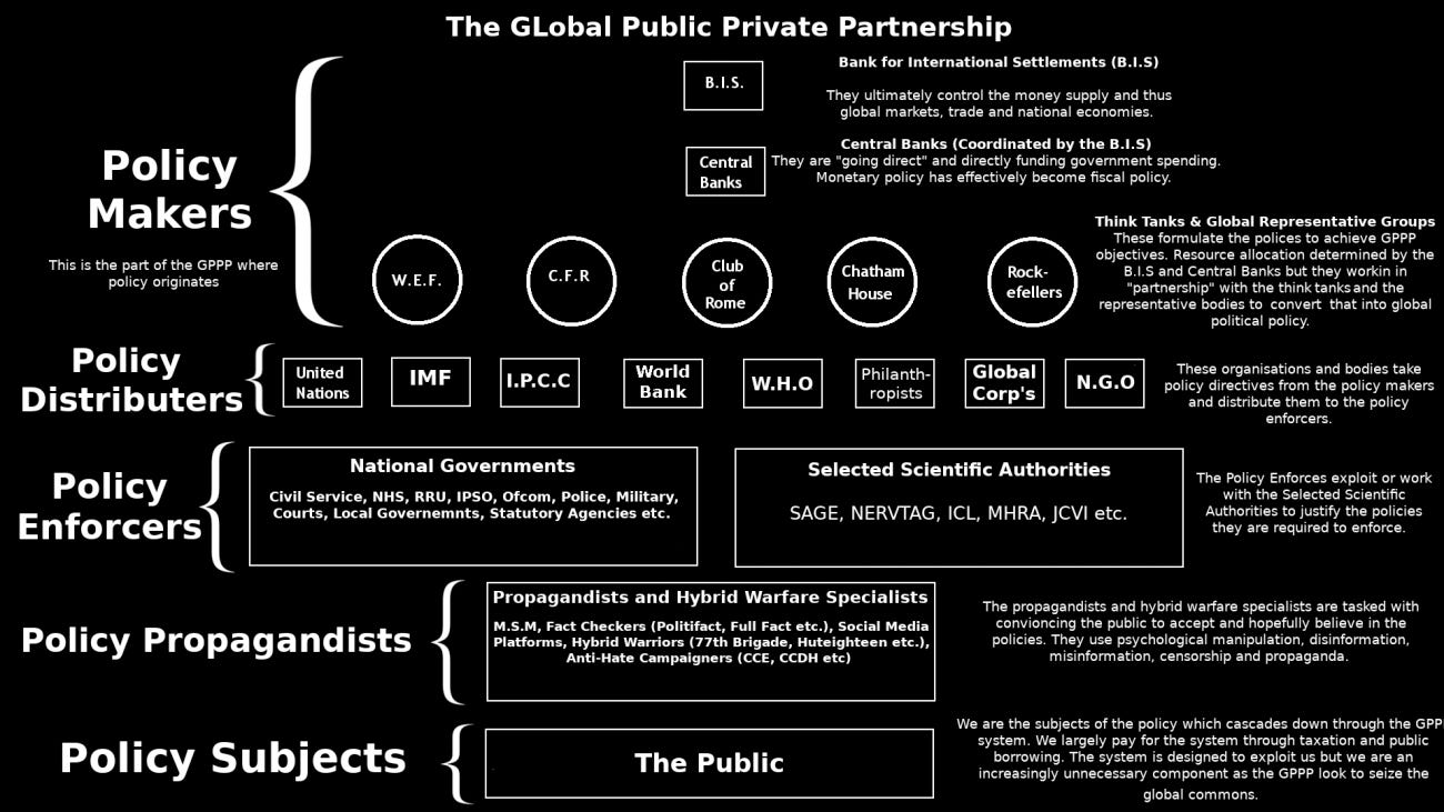 Schwab has become extraordinarily influential over the last 50 years and has selected and promoted many current world leaders via the WEF “Young Global Leaders Program” (WEF Young Leaders). The WEF has spread its tentacles widely and even Australia’s current Health Minister was a former Director of Strategy for the World Economic Forum. “Graduates” of the program include: the leaders of Germany, Argentina, Canada, New Zealand, France, Finland, Belgium as well as many European royals. In addition there are corporate czars whom Klaus has mentored in the Young Leaders Program from companies such as: facebook, Google, Skype, Microsoft and Wikipedia. All these leaders have been schooled in the need for globalism and global government, which is often described as the “new world order” and which is planned to be fuelled by “Public Private Partnerships”. The figure below, from Iain Davis, provides an overview of how this all works. I put this into one of my previous newsletters but it is very important and so I am reproducing this great overview again. Run - when you hear the phrase “public private partnership”.