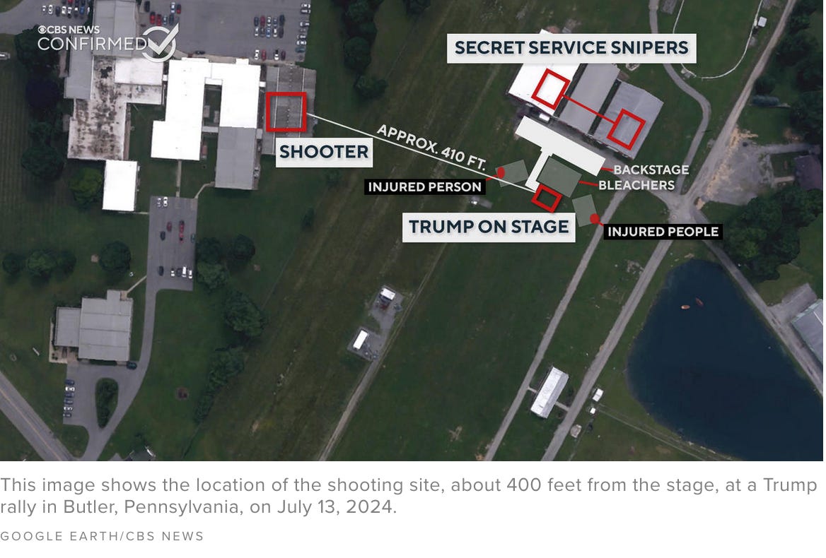 You don’t need to be a security expert to realize that there were dramatic lapses in security, and this can be easily seen from this link that has a map of the rally site in Butler, PA.