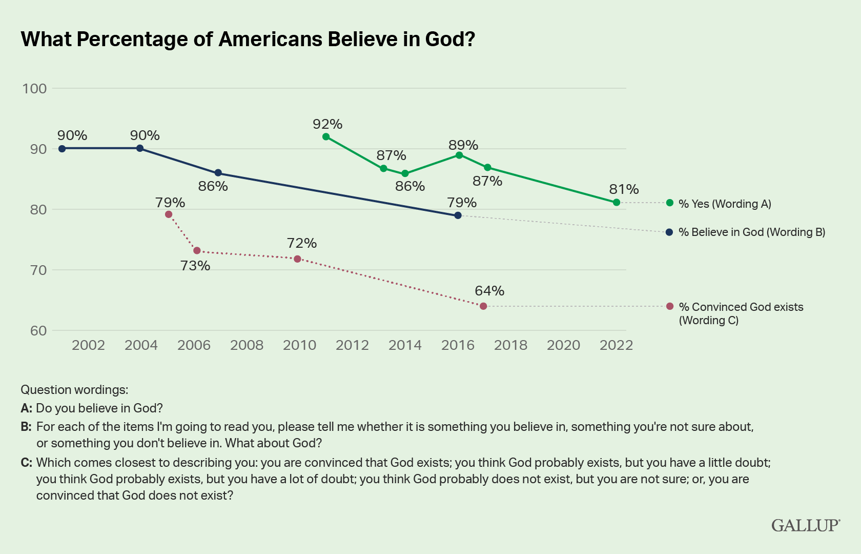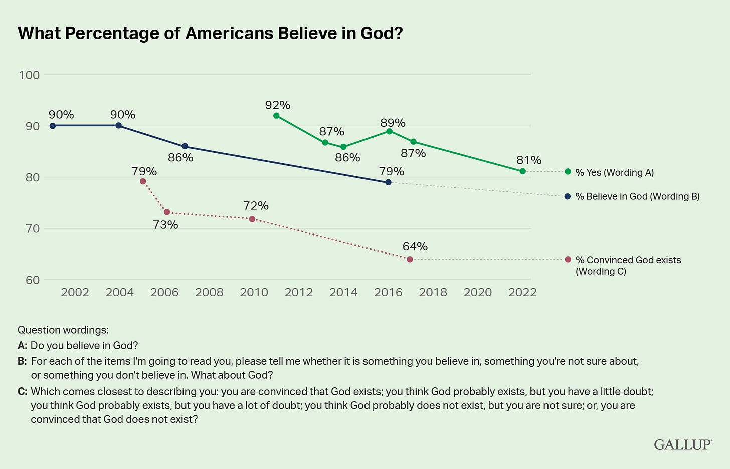 Gallup Poll Graph Examining Trends in Belief in God - Last 20 years